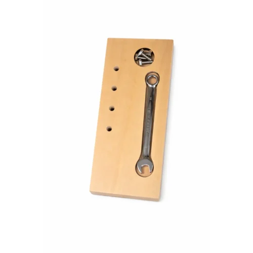 Working with a wrench is a calm, realistic and practical activity that helps a child learn tool knowledge, patience and concentration. It also supports a child's independence because the activity is logical, repetitive and gives the child clear feedback: if the nut fits, it is tightened; if not, it is necessary to try again.