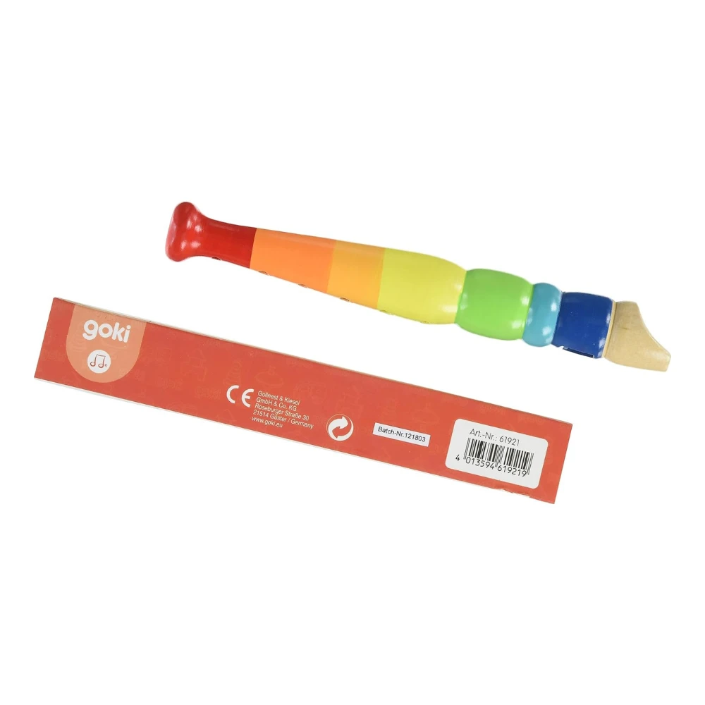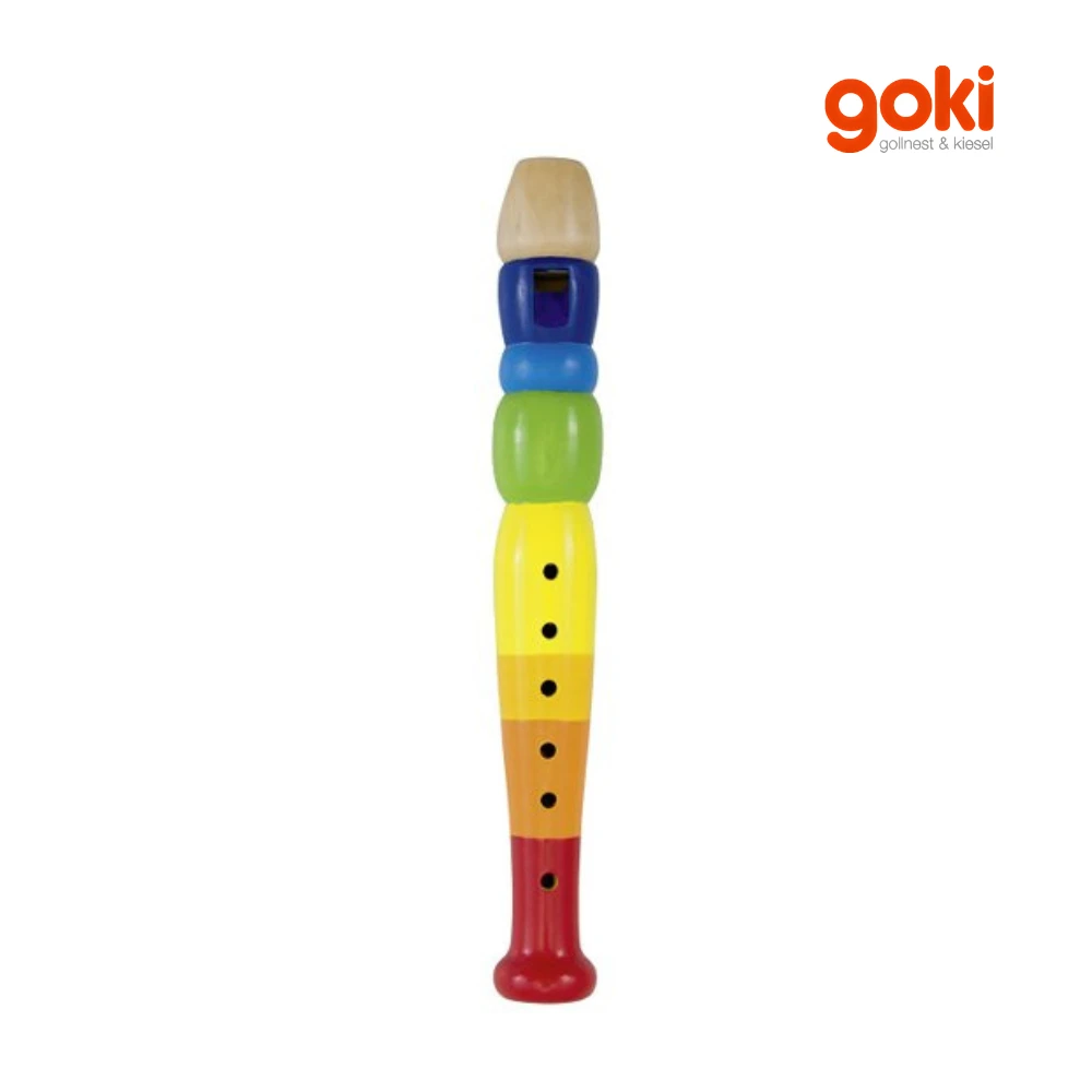 Introduce your child to the world of music with the Goki wooden recorder! The recorder develops children's hearing, fine motor skills and creativity. The child can learn different sounds and melodies in a playful way, which promotes concentration and the development of sound perception. An ideal first step in music education and a fun addition to everyday play. Also suitable for playing with a baby, but under supervision. Dimensions: 2.7 x 2.7 x 20 cm.