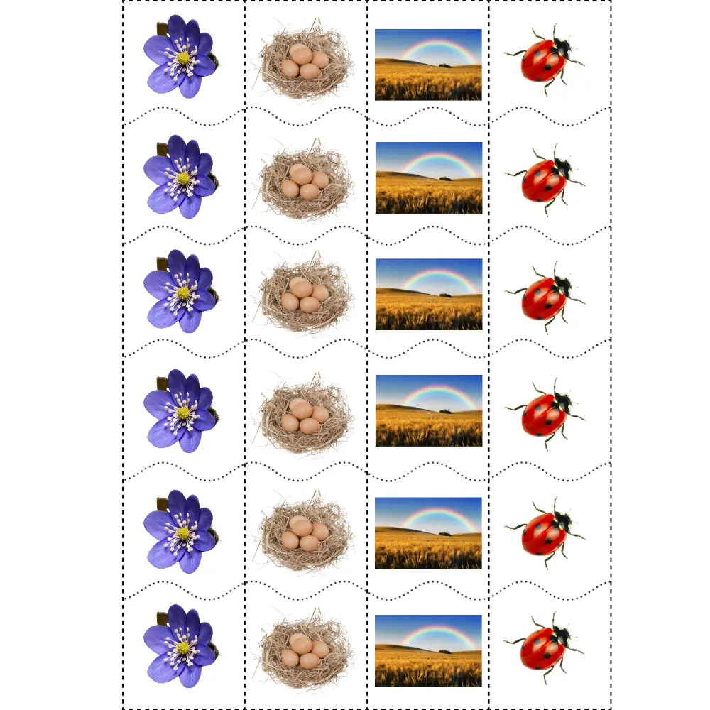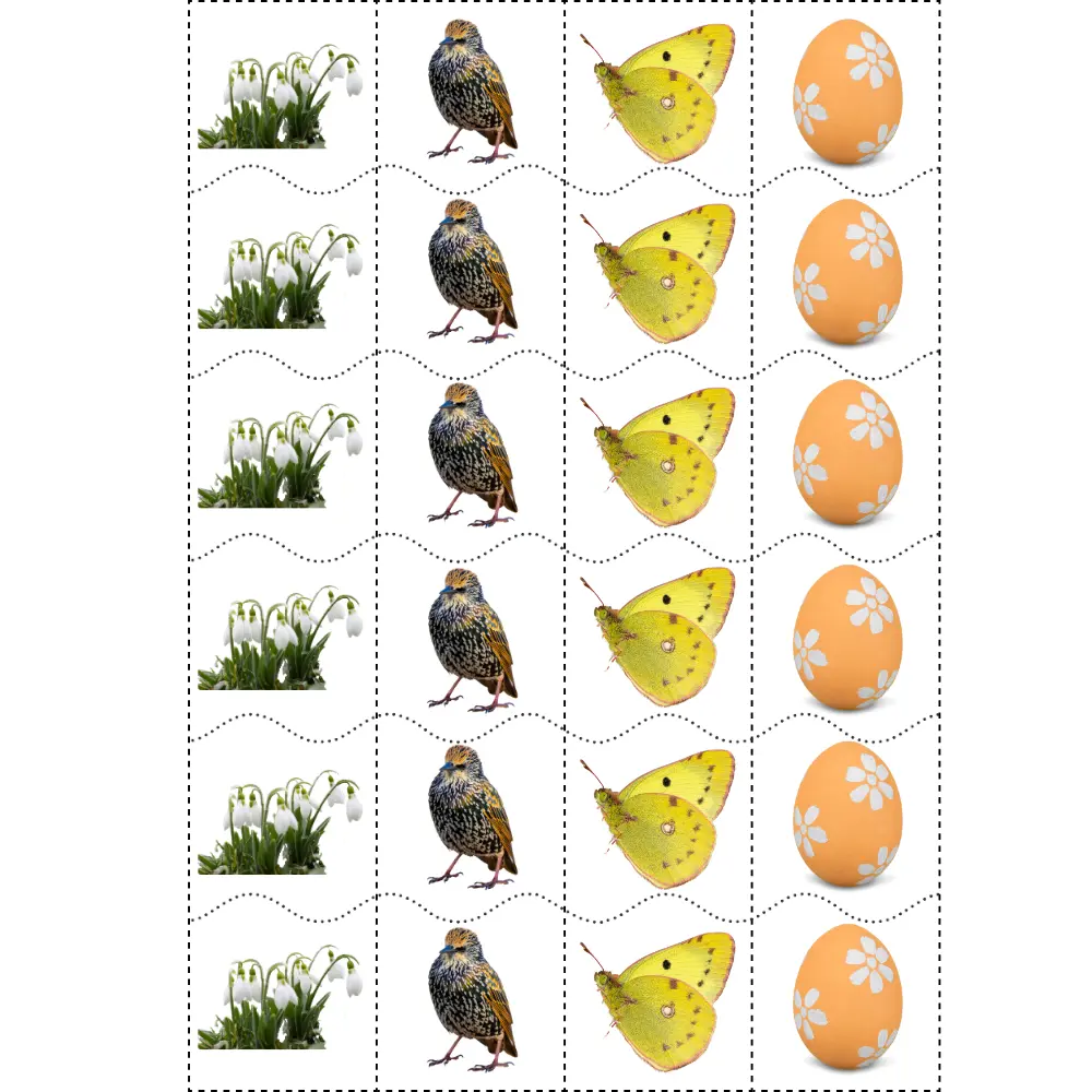 Spring-themed cutting strips help children practice using scissors and develop fine motor skills.
