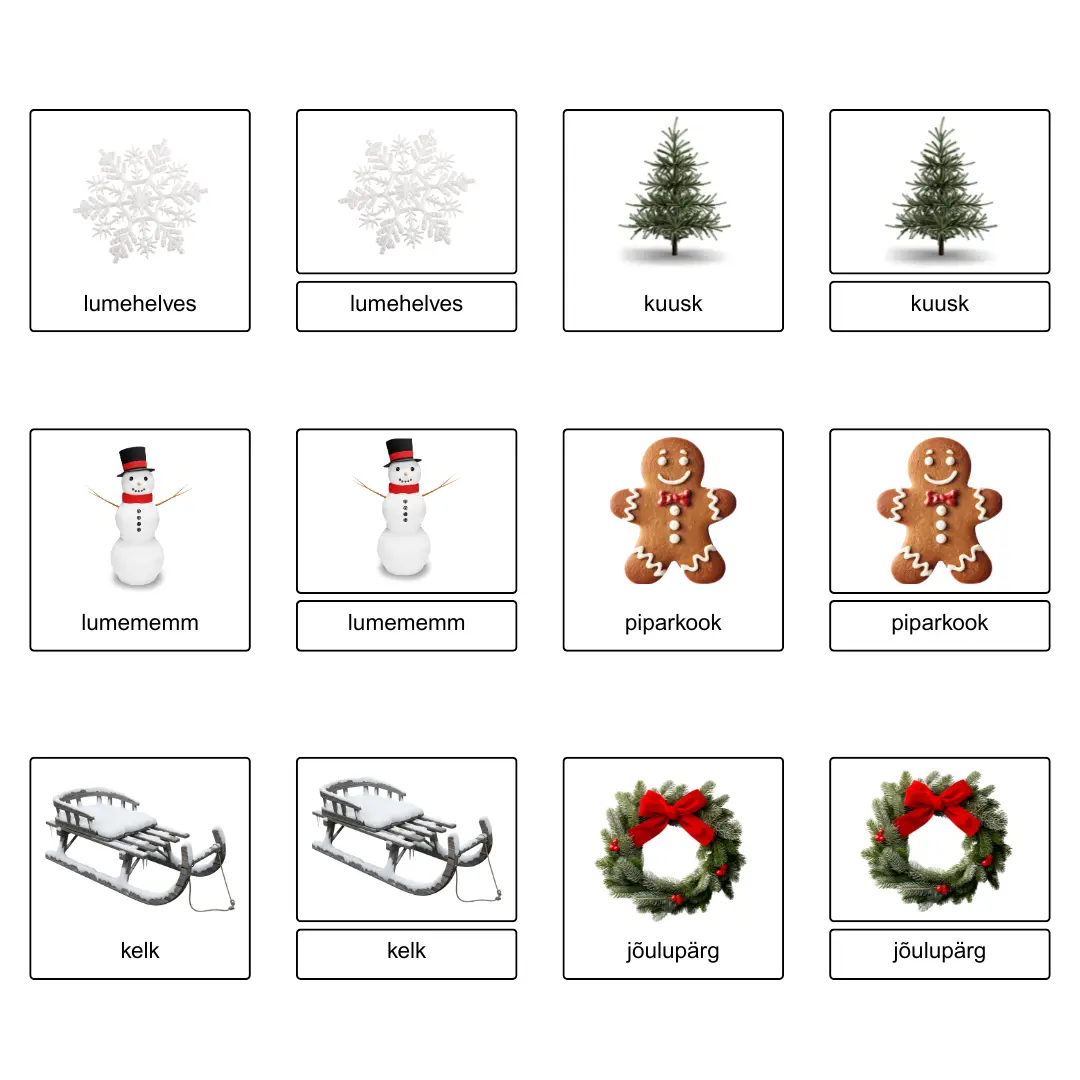 Winter – Montessori 3-part cards