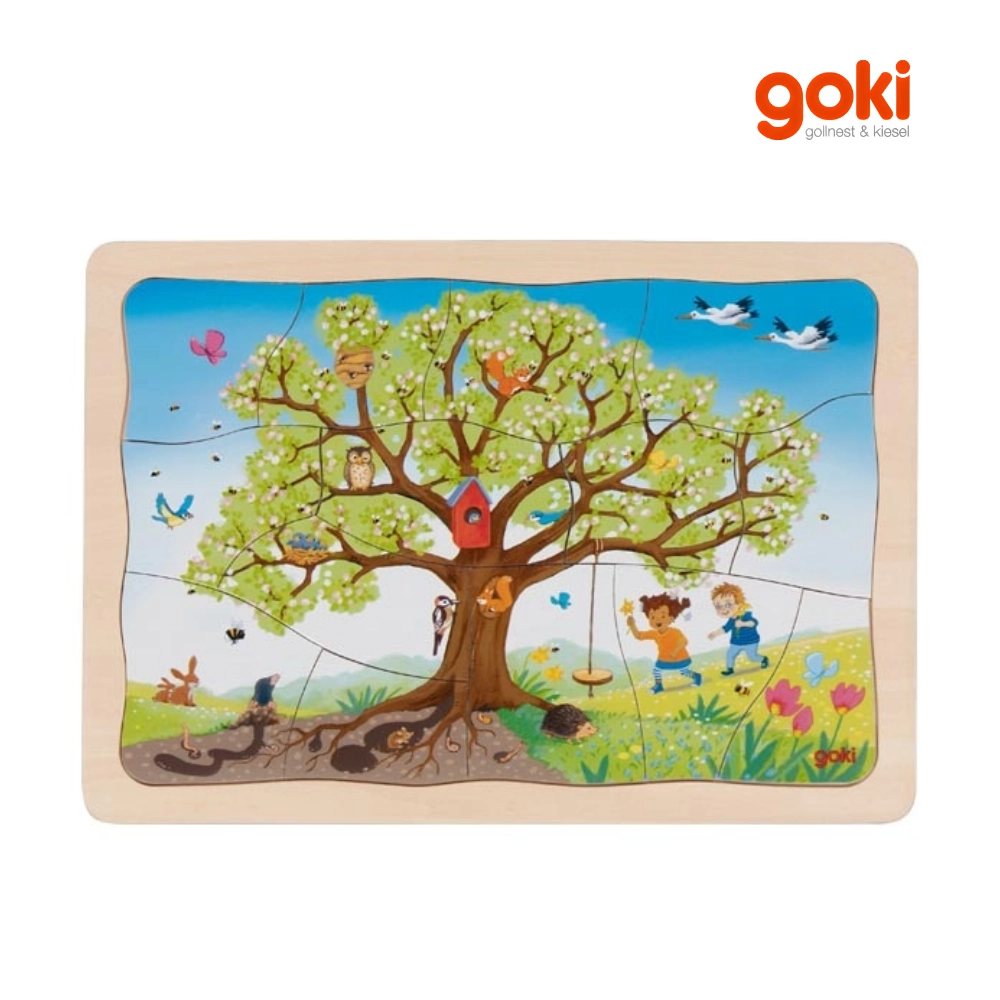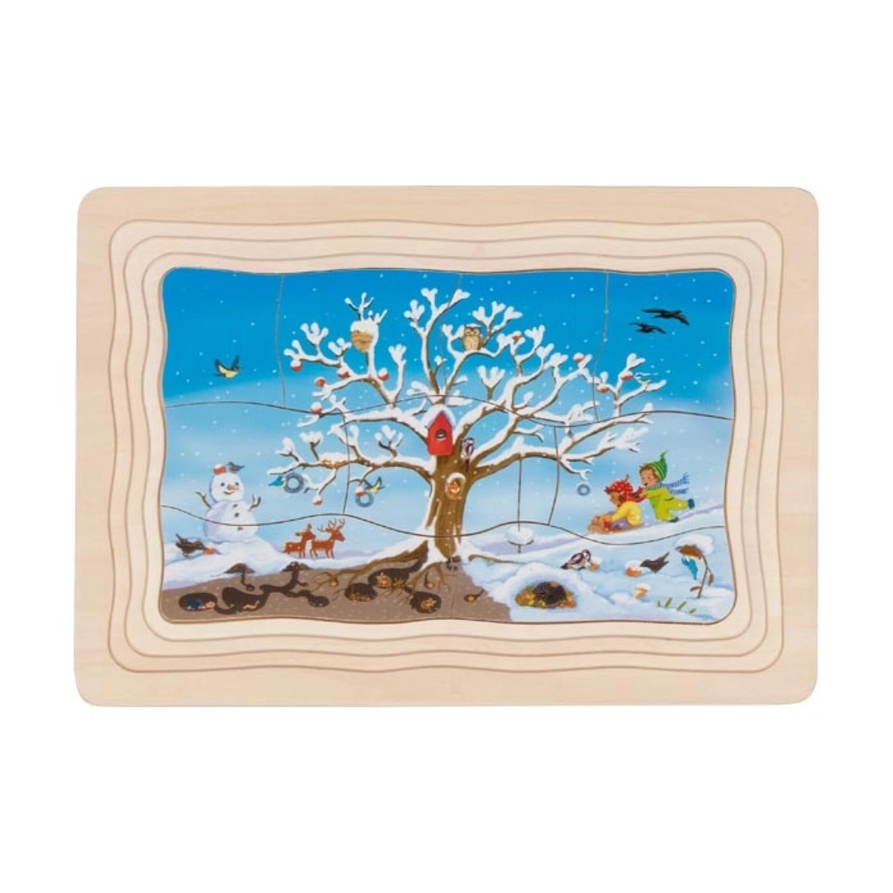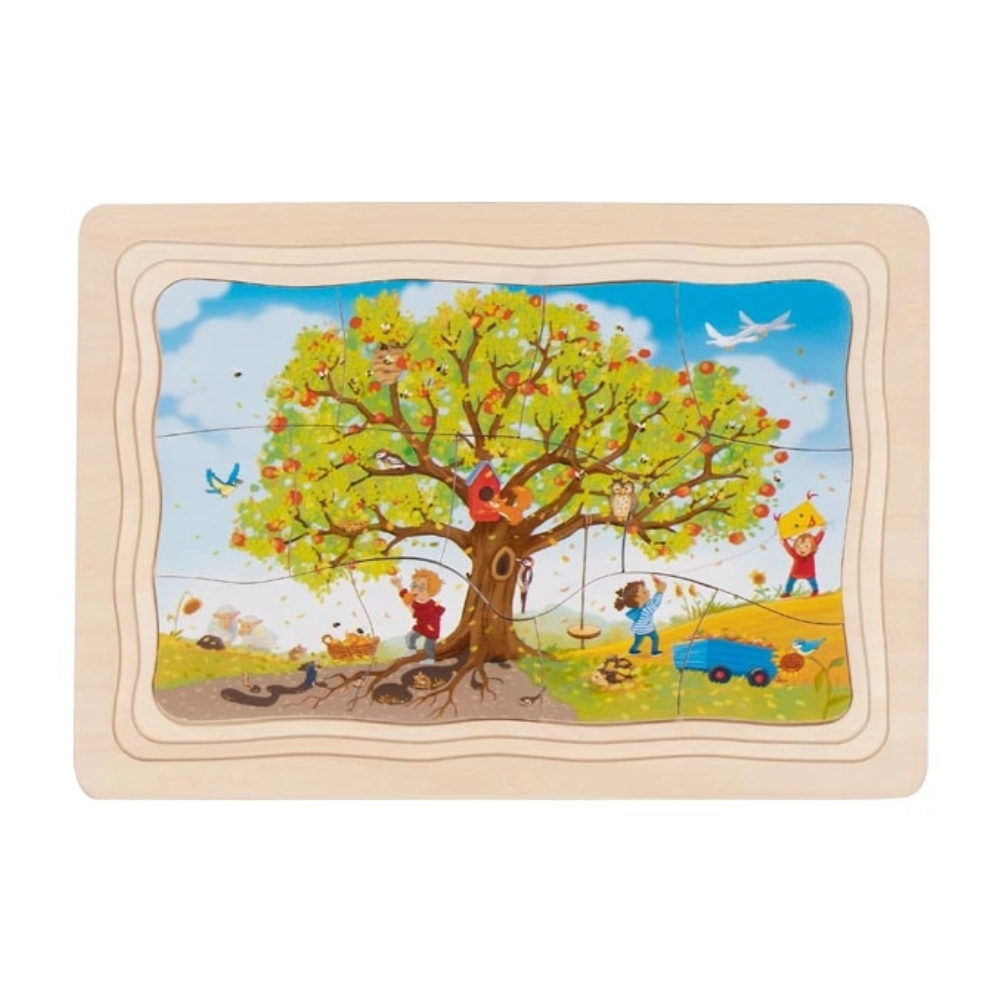 Kevad, suvi, sügis ja talv. See kihiline pusle kujutab sama õunapuud igal erineval aastaajal. Nii õpivad lapsed kõike looduse tsükli kohta, asetades pusle osi õigesti. Ja muidugi käivad lapsed talvel kelgutamas ja sügisel õunu koristamas. Iga pusle kiht kujutab imelist, värvilist pilti. Mõõdud: 28.5 x 20 x 1.5 cm.