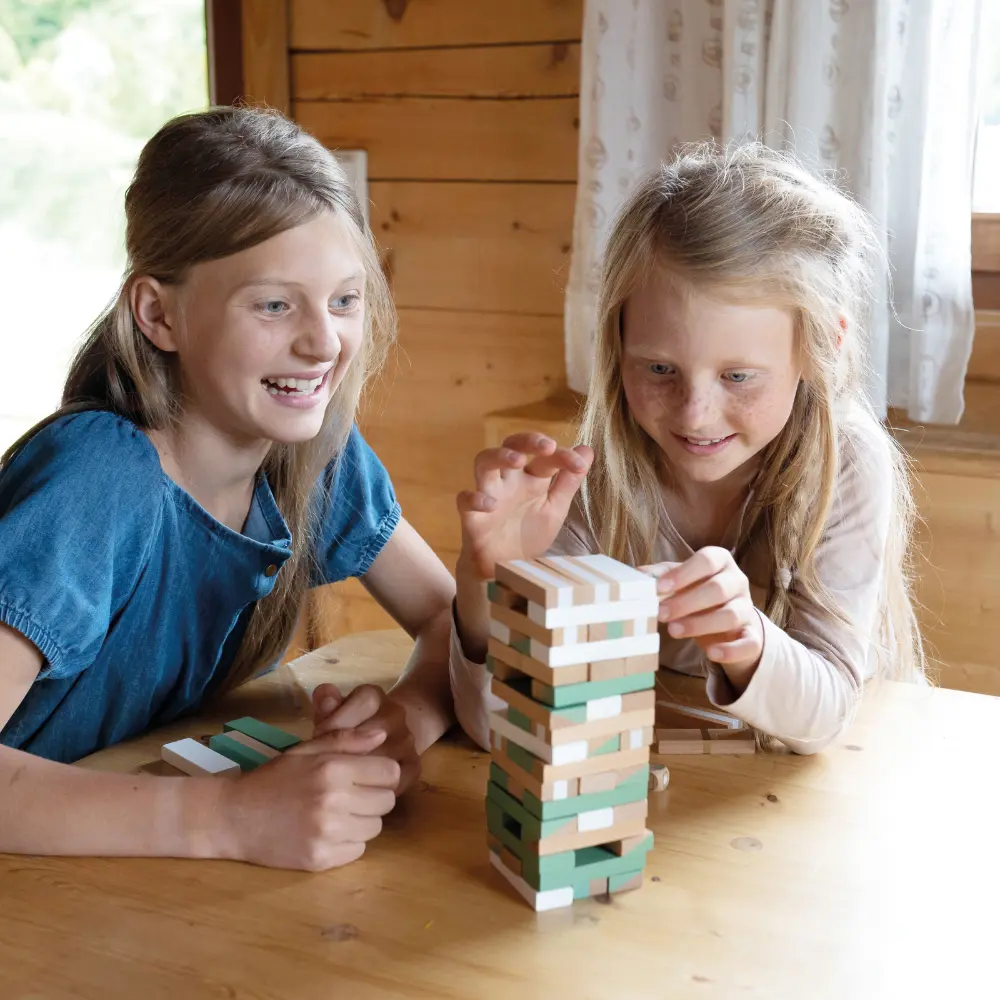 Klassikaline mäng moodsas ja “elegantses” välimuses uhkete kuldsete aktsentide, trendikate pastellvärvide ja lihtsa valge ning rohke naturaalse puiduga. Sisaldab 54 kvaliteetset, erineva kujundusega täispuidust mänguklotsi.