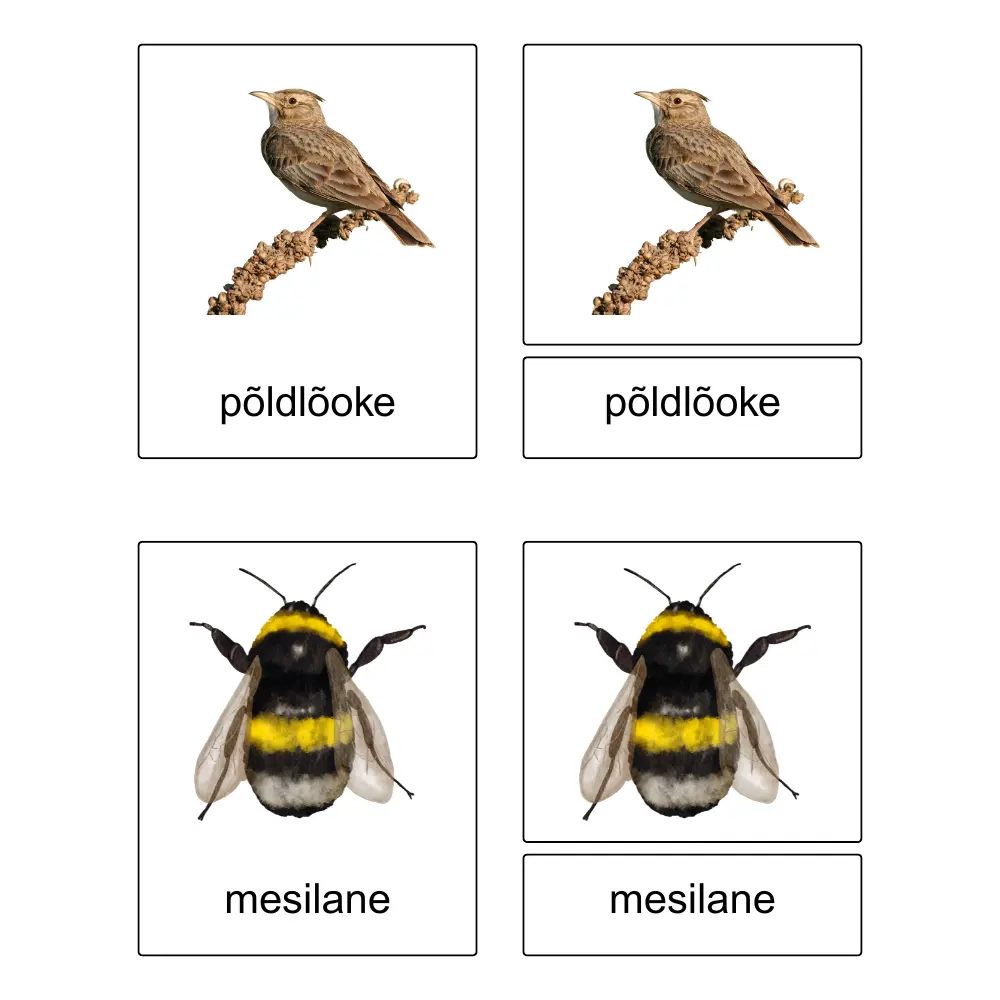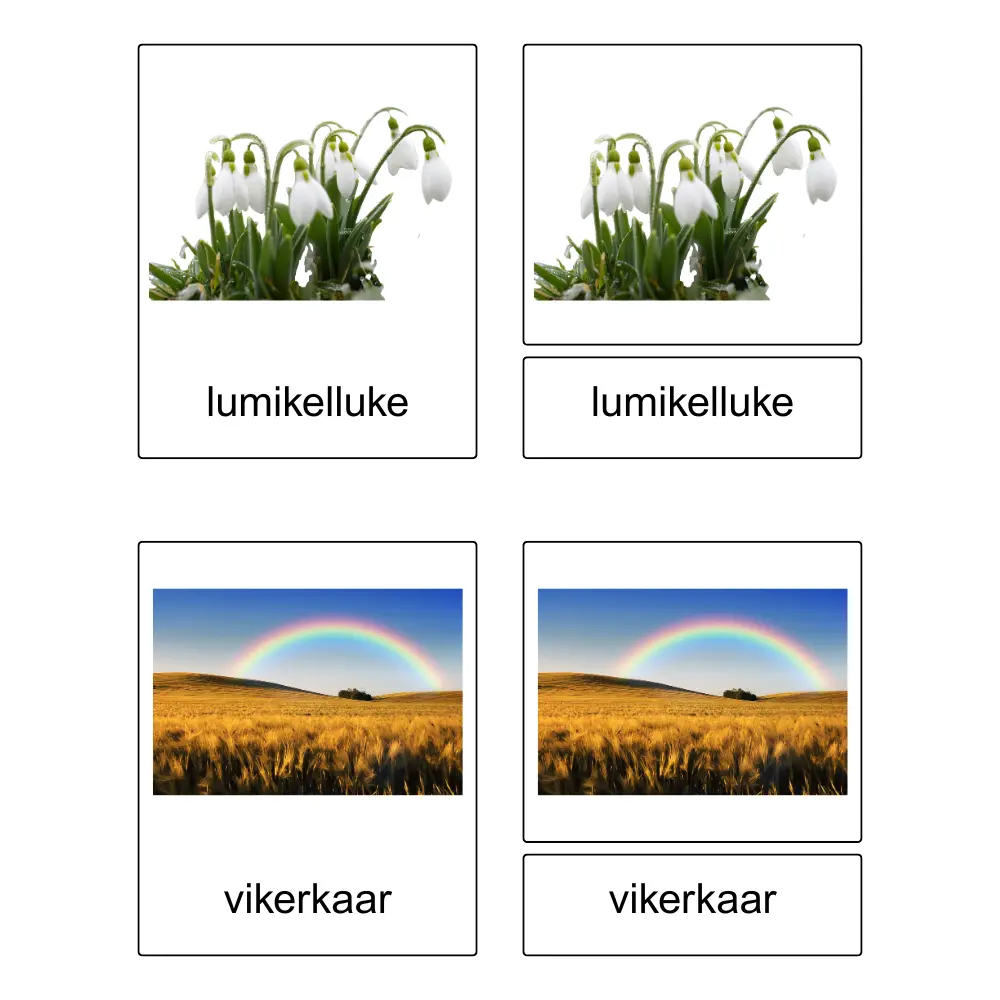 - Sõnakaardid (ainult sõna) – umbes 9 cm x 2.7 cm