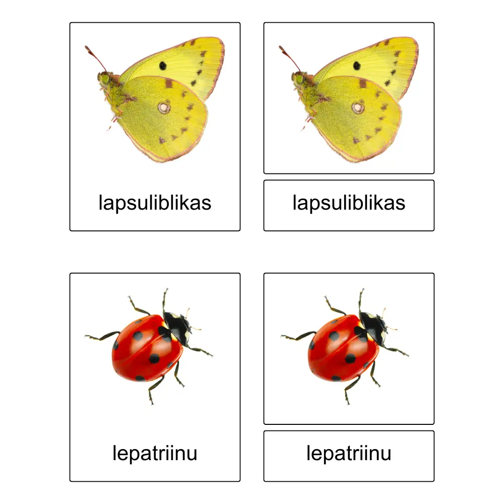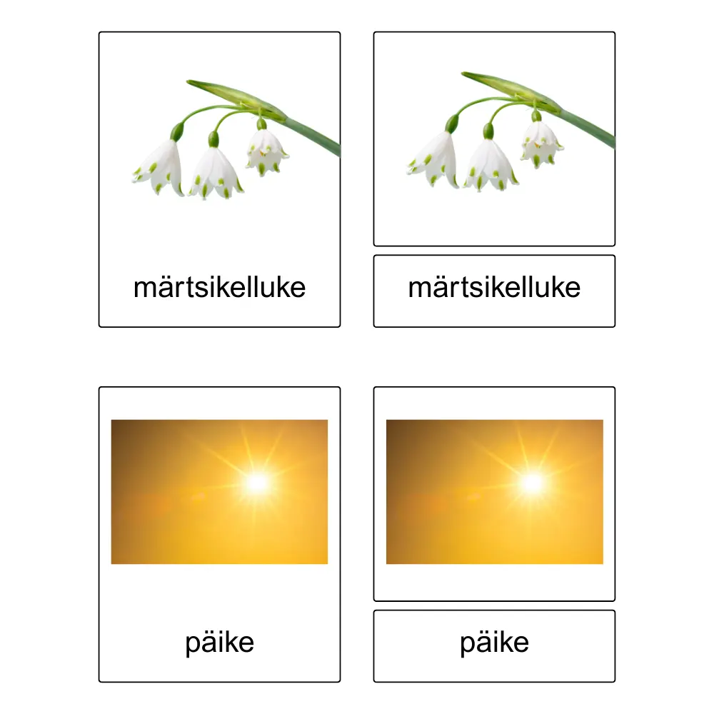 - Kõigepealt paigutab vanem kontrollkaardid enda ette ritta, öeldes oma lapsele iga pildil oleva sõna nime.