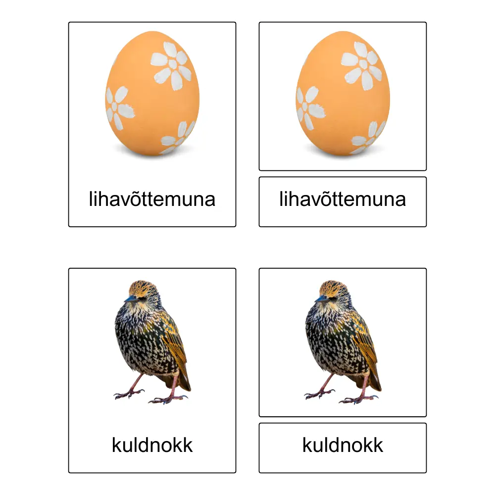 - Seejärel saate 3-osalise kaardikomplekti kokku segada ja julgustada last tegevust kordama.