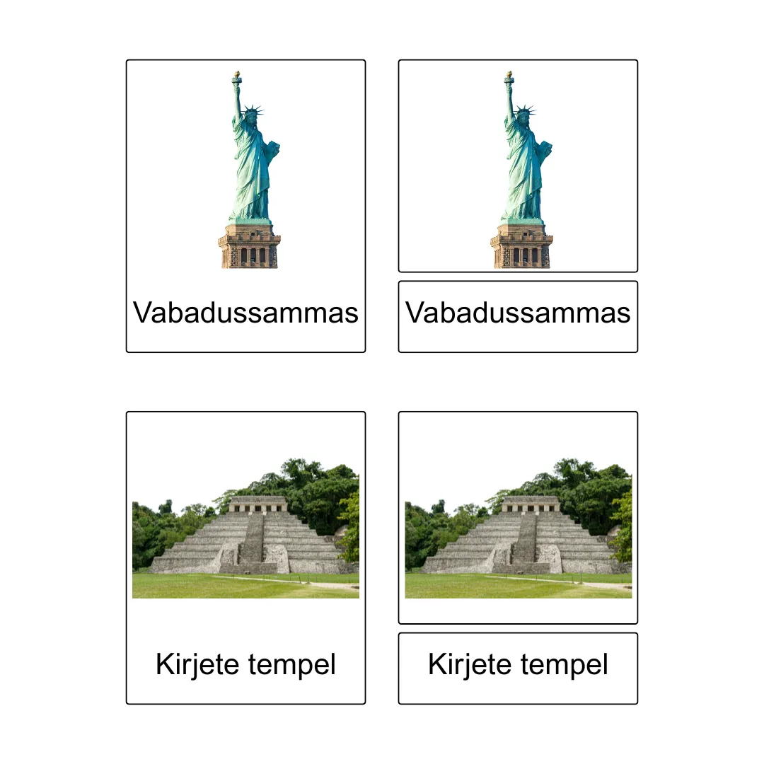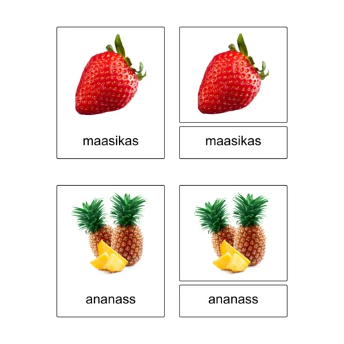 • Seejärel saate 3-osalise kaardikomplekti kokku segada ja julgustada last tegevust kordama.