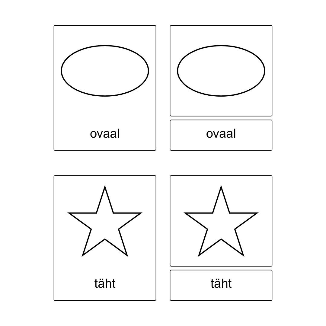 • Sõnakaardid (ainult sõna) – umbes 9 cm x 2.7 cm