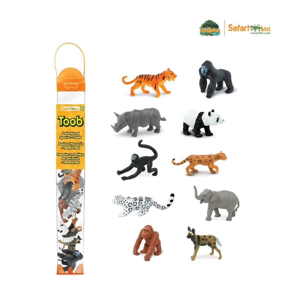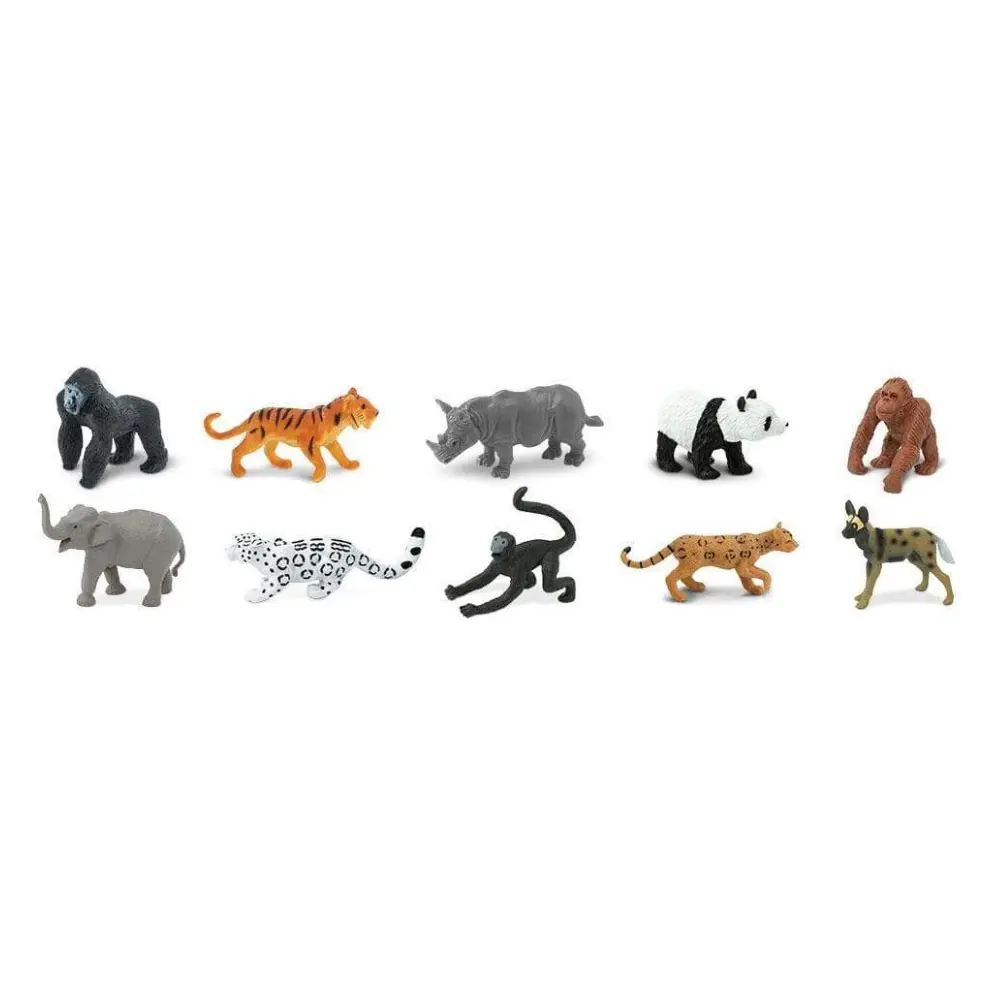 Vähesed asjad on olulisemad kui meie planeedi ohustatud liikide kaitsmine! See komplekt sisaldab mägigorillat, hiidpandat, Bengali tiigrit, orangutani, teravmokk-ninasarvikut, ämblikahvi, lumeleopardi, Aafrika metskoera, Aasia elevanti ja lumeleopardi.