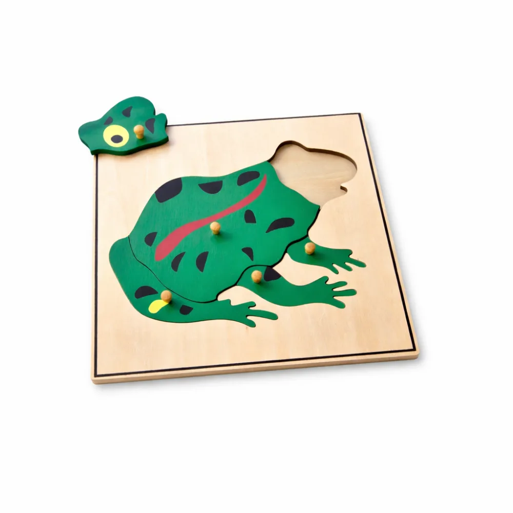 See Montessori pusle aitab lapsel õppida konna tundma läbi detailide ja terviku mõistmise. Puslet kokku pannes näeb laps, kuidas konn koosneb erinevatest osadest, ning saab neid ükshaaval uurida ja nimetada – jalad, keha, pea jne. Nii kujuneb arusaam loomast palju sügavamalt kui lihtsalt pilti vaadates.