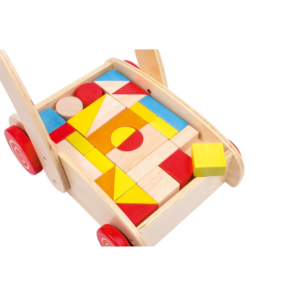 Selle armsa käruga on noored seiklejad alati hästi toetatud. See aitab neil kõndima õppida ja samal ajal saab seda kasutada 29 värvilise klotsi transportimiseks.
