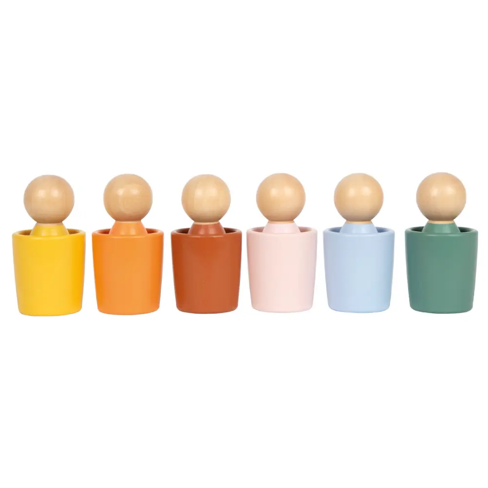 Sorteeri, lisa ja avasta värve – Sorteerimiskomplekt puidust kujukestega on mitmekülgne õppe- ja sorteerimismänguasi väikelastele ning valmistatud FSC® 100% sertifitseeritud puidust. Kuue värvilise kausi ja kuue sobiva puidust figuuriga õpivad lapsed mänguliselt värvide sorteerimist, treenivad peenmotoorikat ning käe ja silmade koordinatsiooni, arendades samal ajal arusaama korrast ja struktuurist. Olgu tegemist sorteerimisega, virnastamisega või vaba mänguga – figuuridega sorteerimiskausid soodustavad loomingulist avastamist ja õppimist.