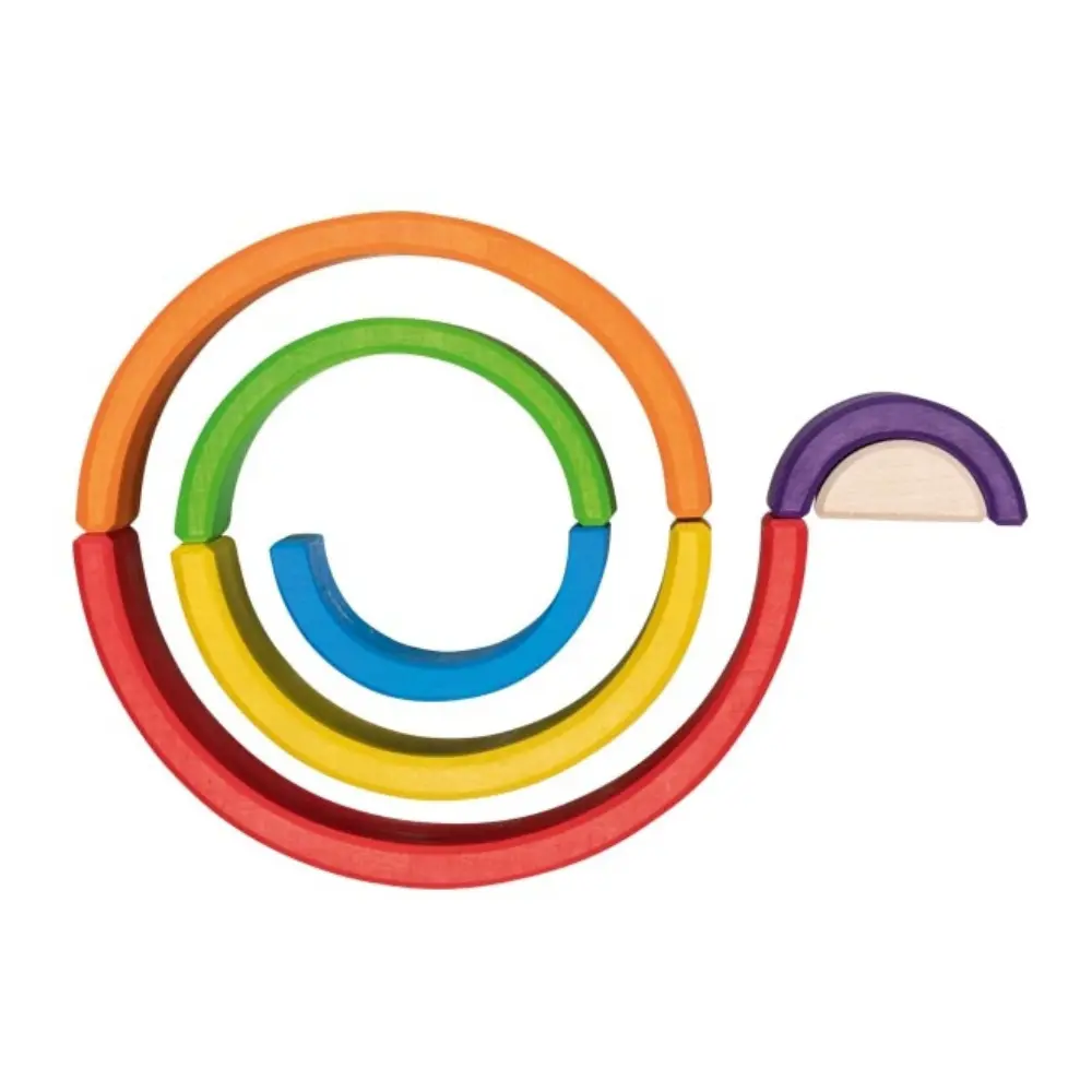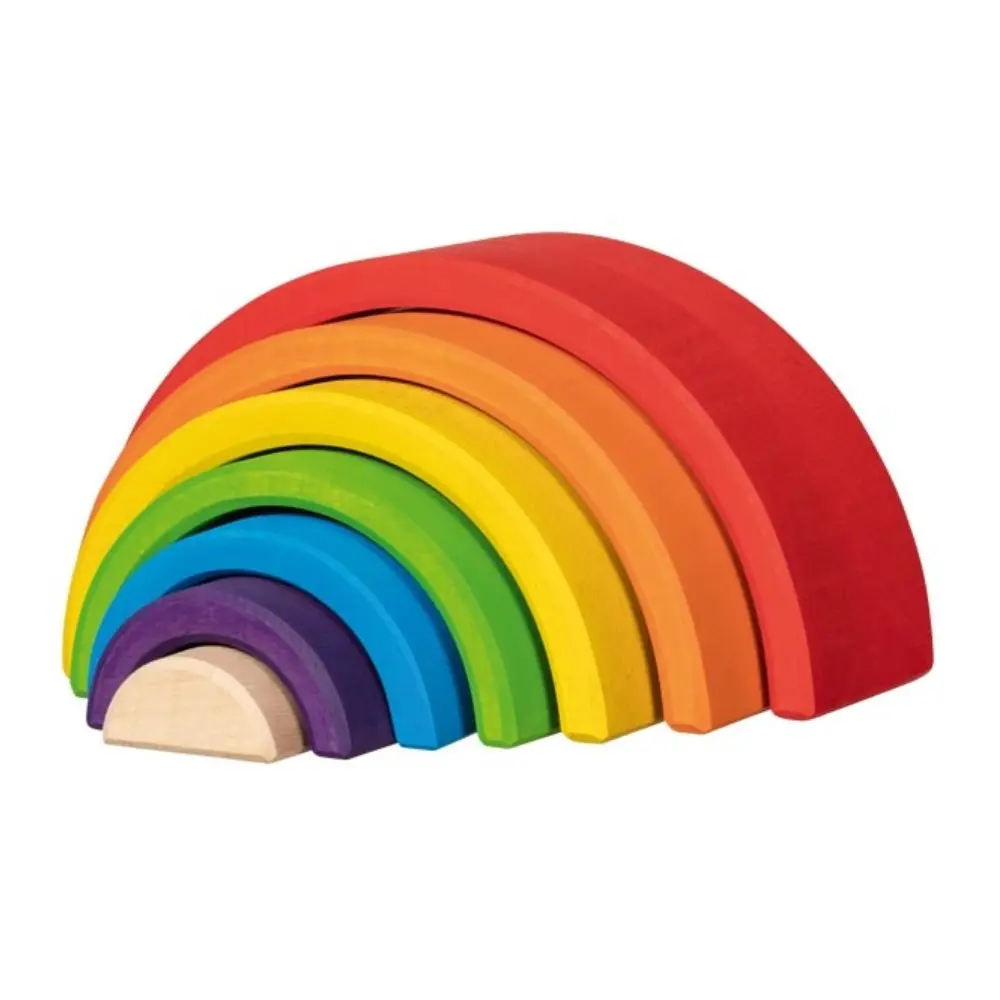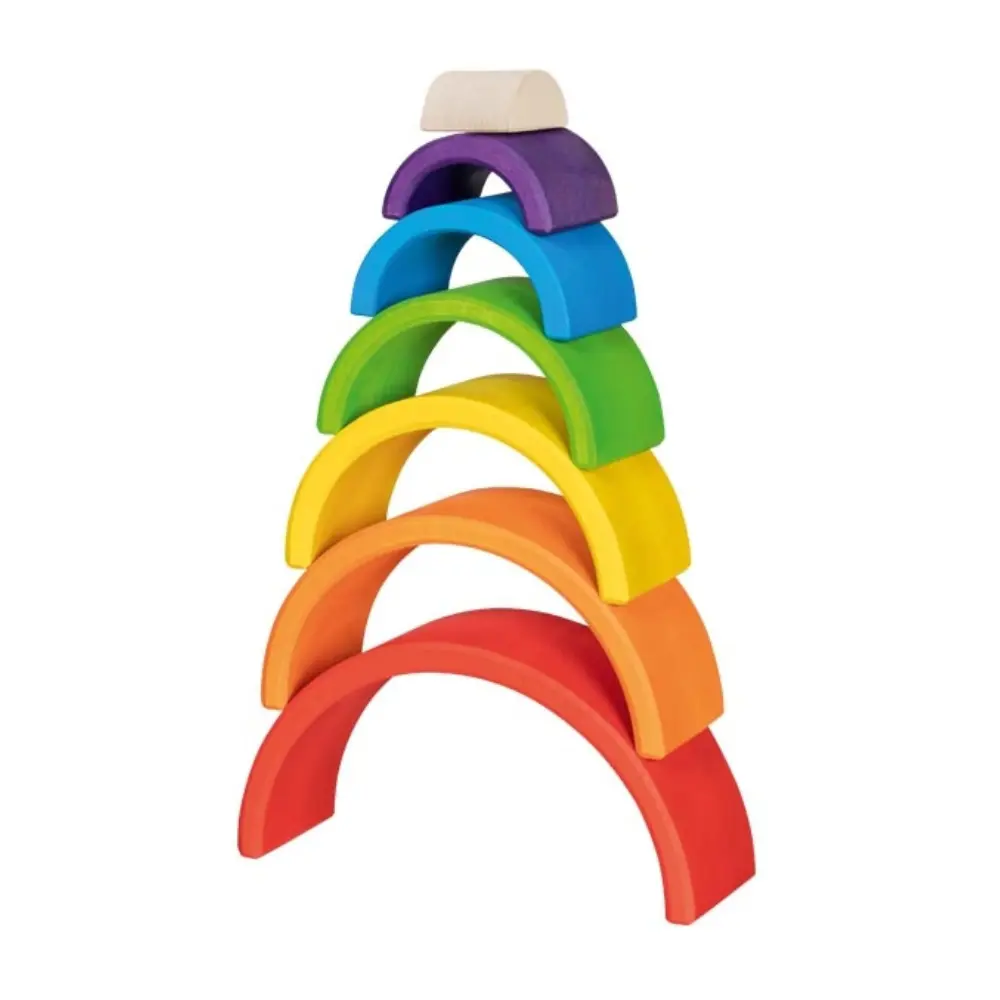 Vikerkaareklotsidega avastavad lapsed loomingulise ja vaba mängu. Selle vikerkaare värvid on harmooniliselt koordineeritud ja toovad esile naturaalse puidu. Mõõdud: 19 x 6 x 9.5 cm.
