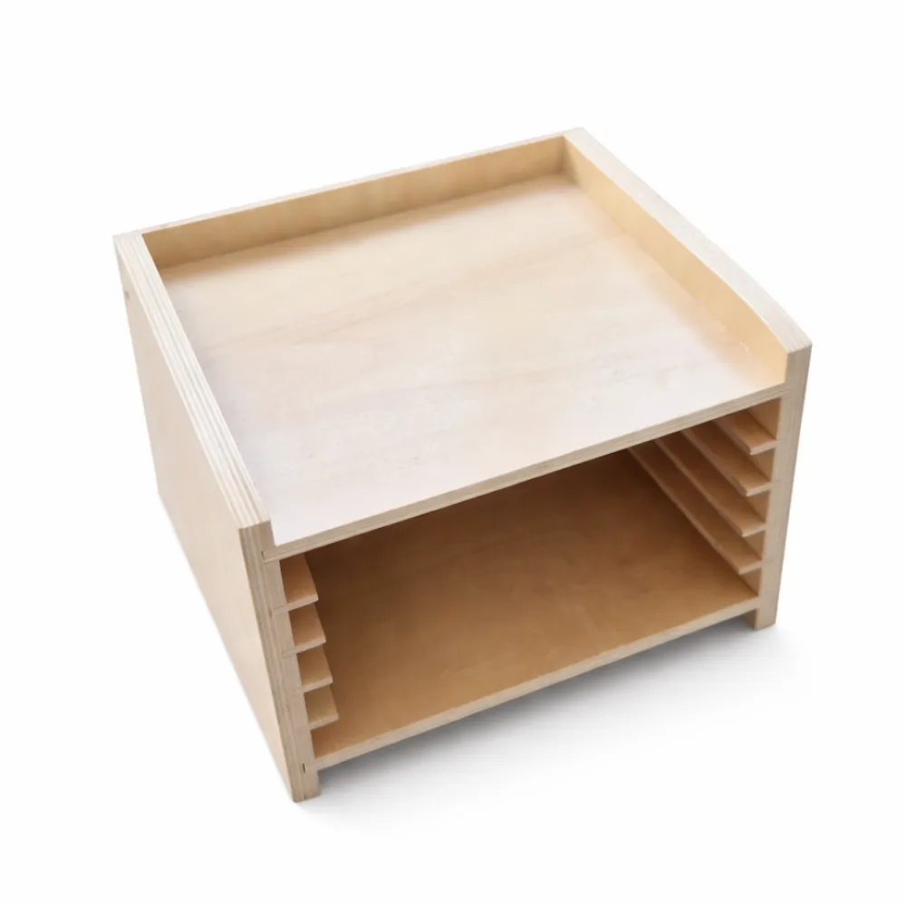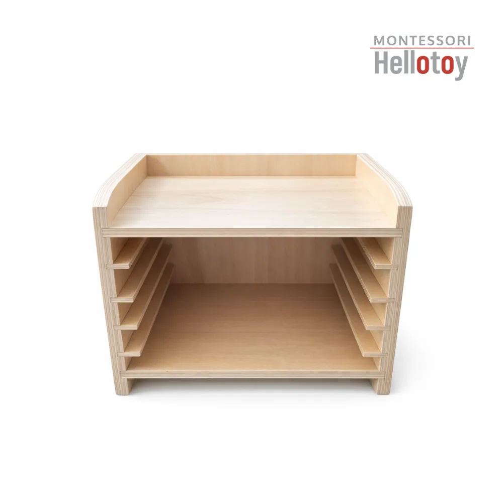Kapi pealispind on ideaalne täiendav tööpind, mida saab kasutada puslede lahendamiseks või muude väikeste tegevuste jaoks, muutes selle samal ajal funktsionaalseks ja mitmekülgseks. Tänu stabiilsele konstruktsioonile ja naturaalsele puidule sobib kapp nii Montessori-klassiruumi kui ka koduse mängu- ja õpikeskkonna osaks.